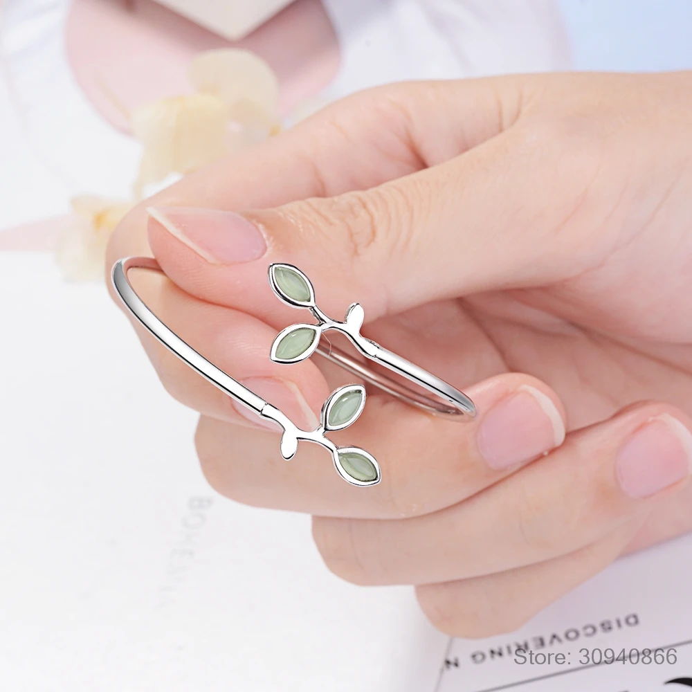 Best Genuine 100% 925 Sterling Silver Opal Leaves Buds Open Bracelets & Bangles for Women Fashion Creati