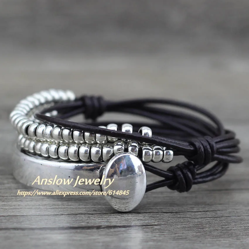 Promo Anslow Brand Bohemian Vintage Handmade Multilayer Wrap Jewelry Women Mother's Day Birthday Leather