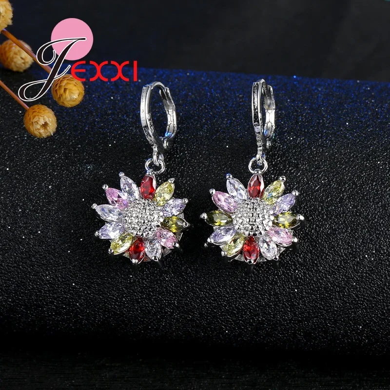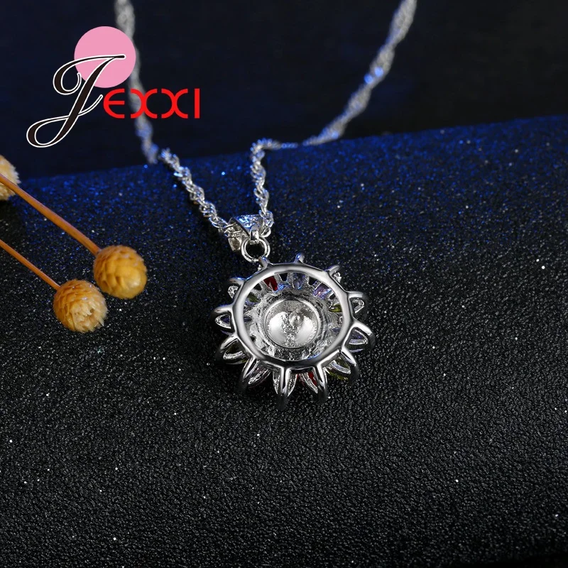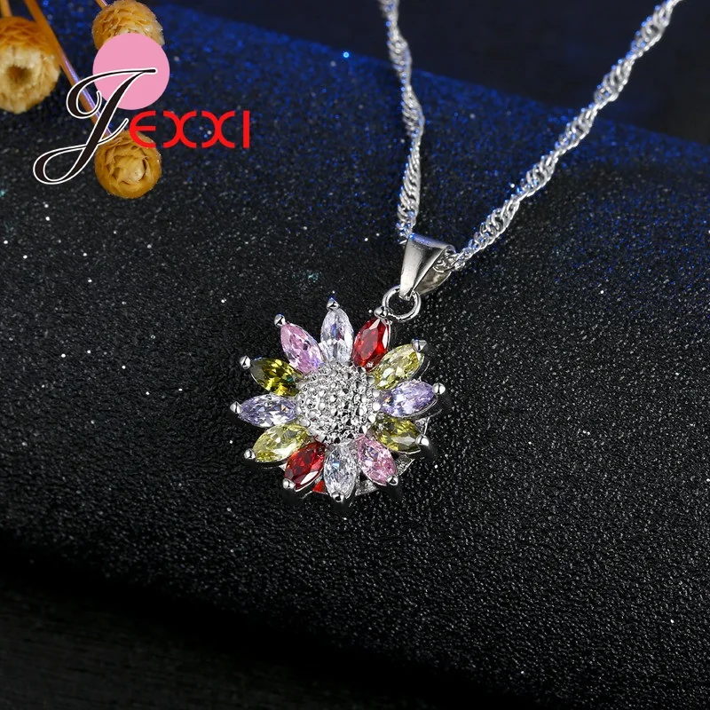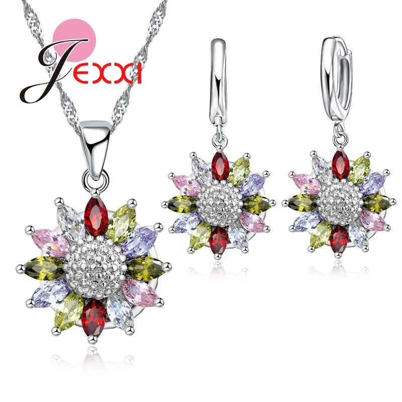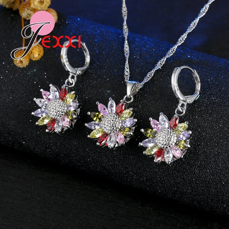 Promo Free Shipping Chrysanthemum Pendant Necklace Earrings Woman Fashion Jewelry Set 925 Sterling Silver