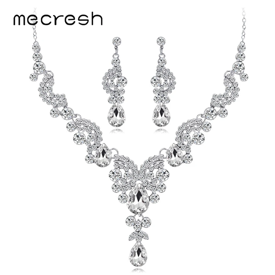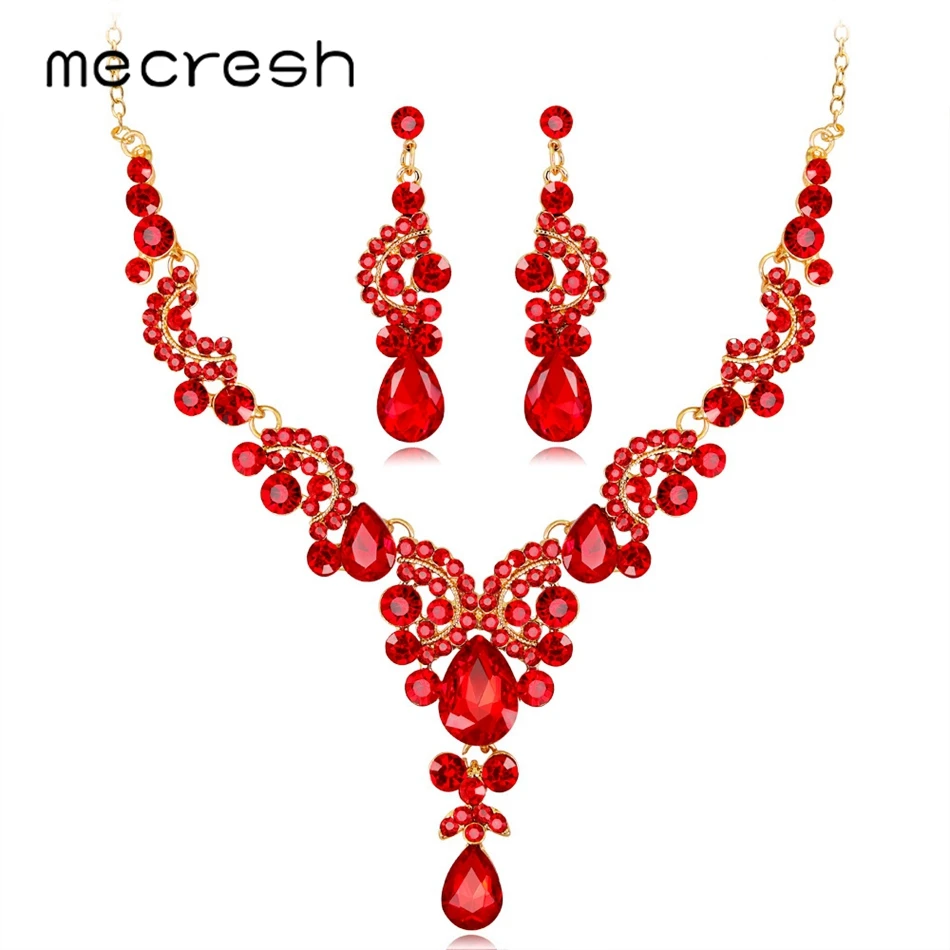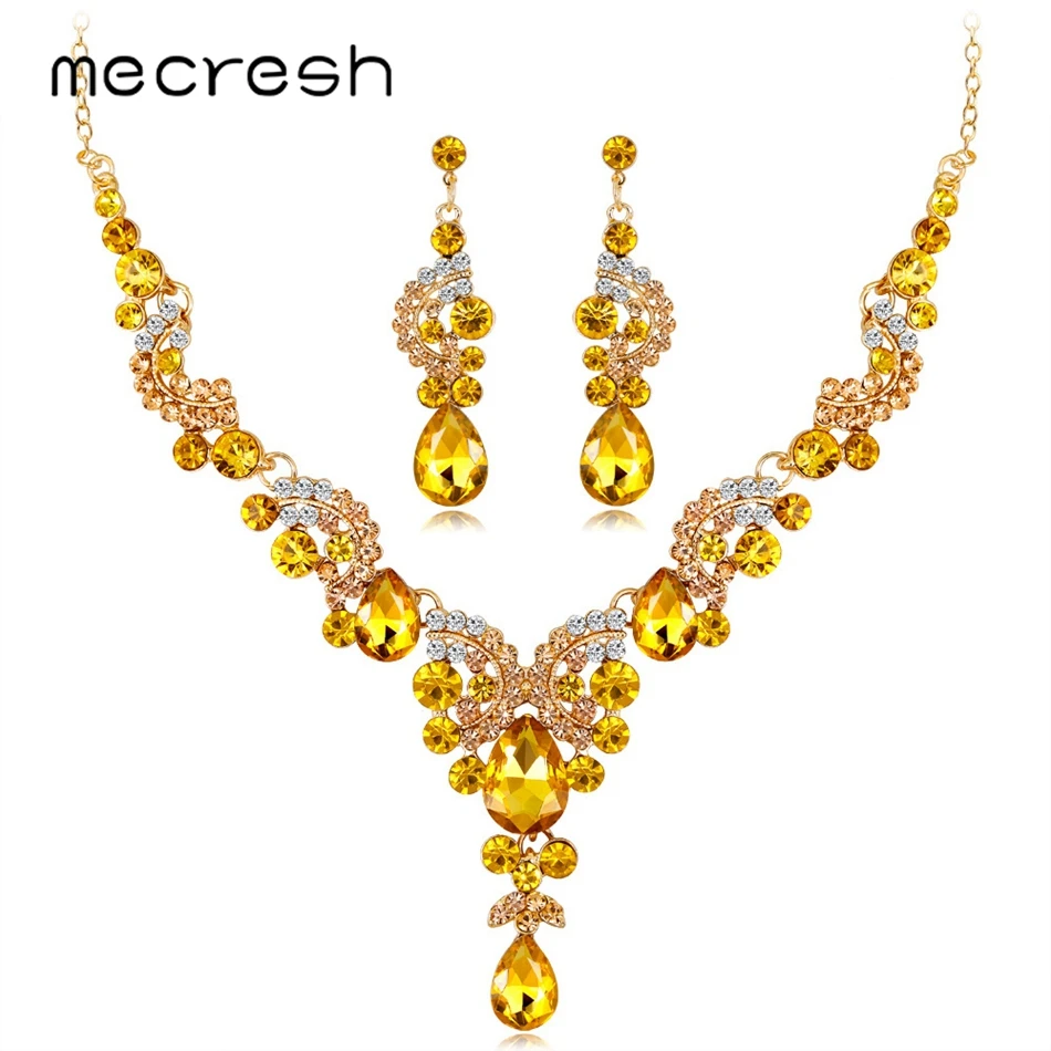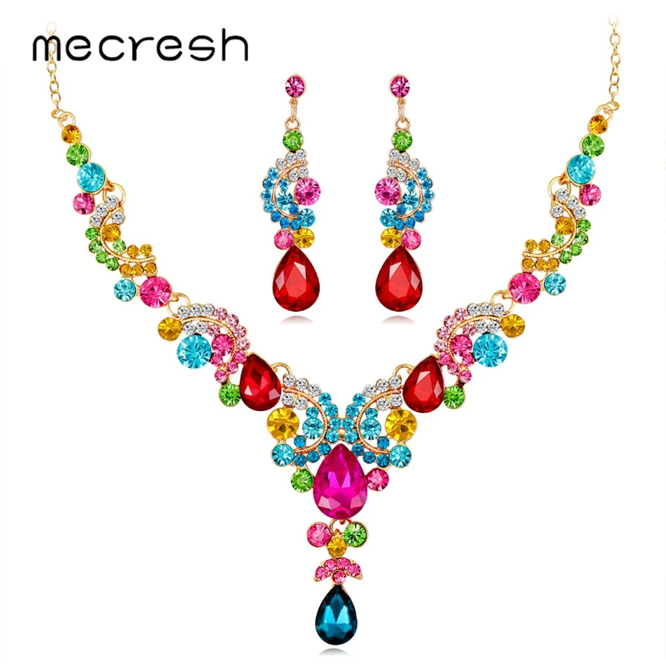 Buy Mecresh Statement Crystal Leaf Indian Bridal Jewelry Set Multicolor Women Chandelier Necklace Earri