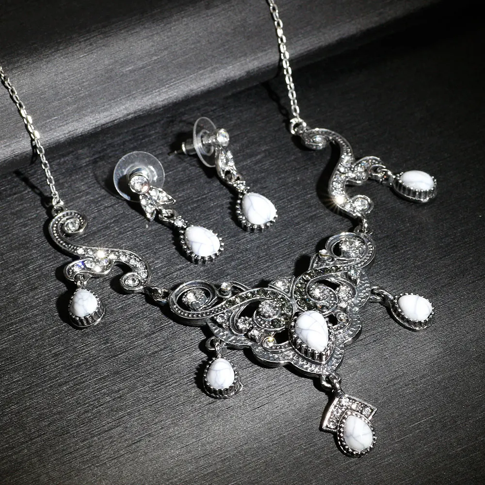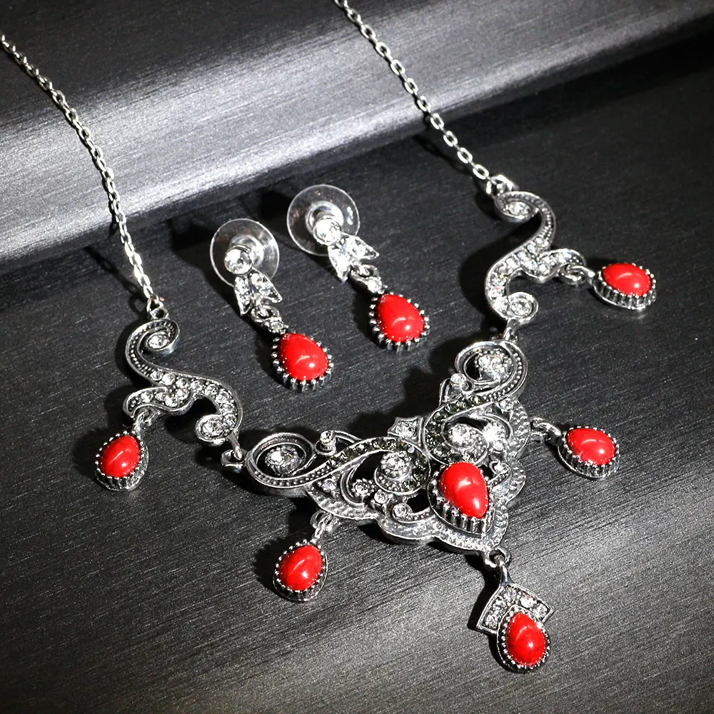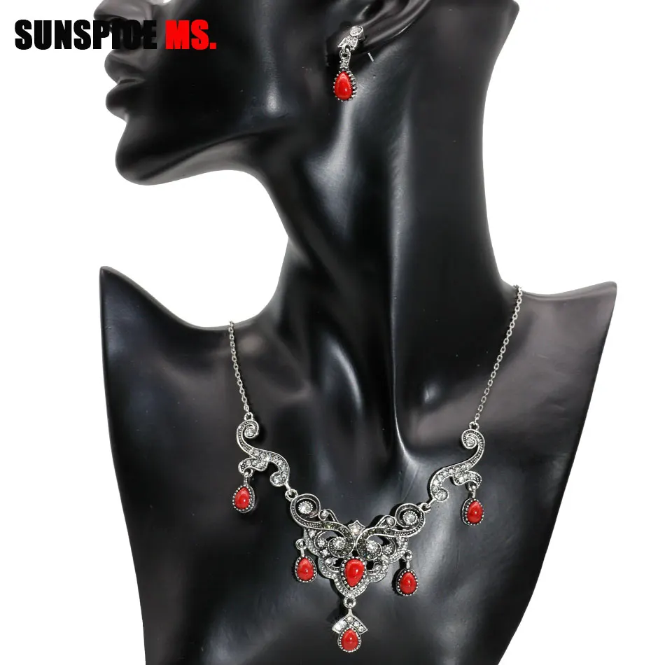 Buy SUNSPICE MS retro silver color earring necklace sets for women ethnic wedding jewelry Morocco brida
