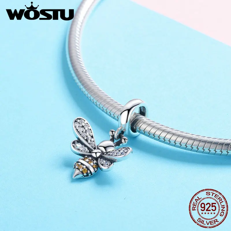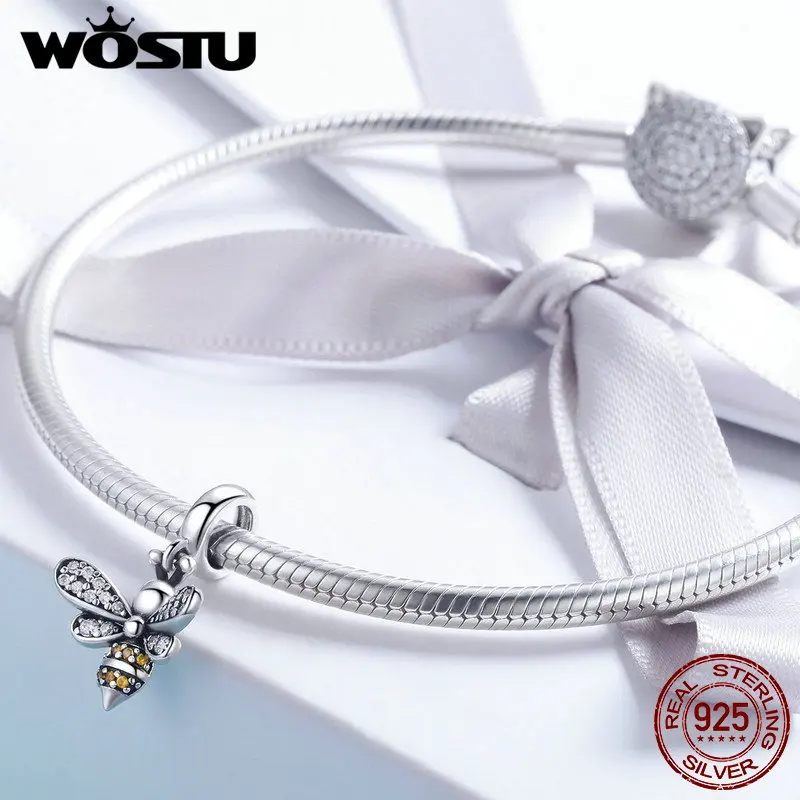 Today i want to review about WOSTU 925 Sterling Silver Hot Sell Bee Crystal CZ Chain Bead Charms fit Bracelet Necklace 2019 Fash. I uncover this cool product from China Online Store, best manucafturer.